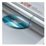 SPS – (Safety Protection System) package: patented, electronically controlled, transparent safety flap in the feed opening as additional safety element; EASY-SWITCH – intelligent control element indicating the operational status of the shredder with varying colour codes and back-lit symbols; automatic reverse and powercut-off (avoids paper jams); automatic stop if the shred bin is full; electronic door protection via a magnetic proximity switch; double motor protection; ZERO ENERGY standby mode: Complete, automatic disconnection from power supply after 30 minutes. Photo cell controlled automatic start and stop. High-quality, paper clip proof cutting shafts from special hardened steel with lifetime guarantee. Convenient 400 mm feed opening for continuous forms and large formats. Patented ECC – Electronic Capacity Control: indication of the used sheet capacity during shredding process. High-quality, paper clip proof cutting shafts from special hardened steel with lifetime guarantee. Strip cut model and 4 x 40 mm particle cut model suitable for shredding the most common CDs/DVDs. Quiet but powerful single phase motor for continuous operation. Sturdy Twin Drive System with fully closed gear box housing. High-quality wooden cabinet, mobile on castors. Convenient environmentally-friendly shred bin (no disposable shred bags required).