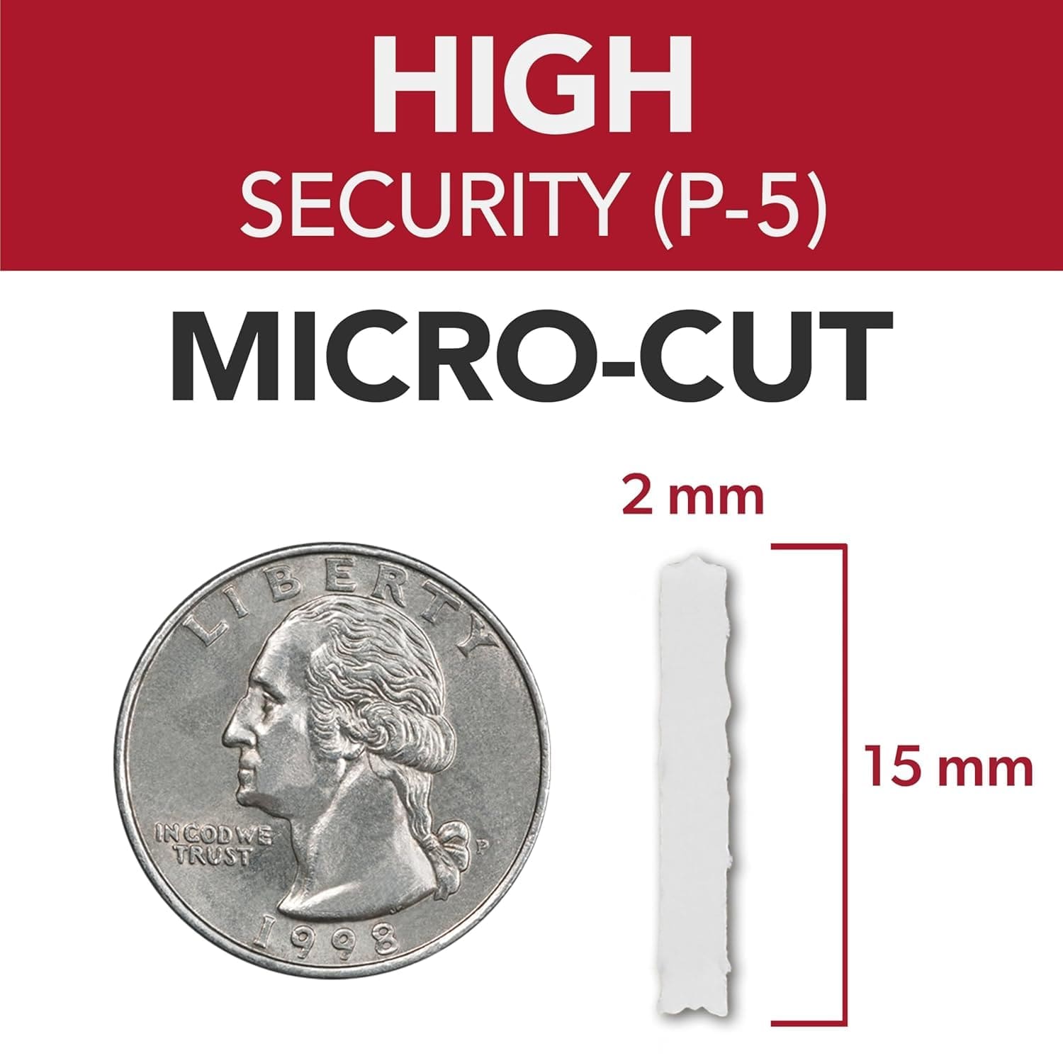 • 2 x 15 mm Micro cut, P-5 security level for high security documents