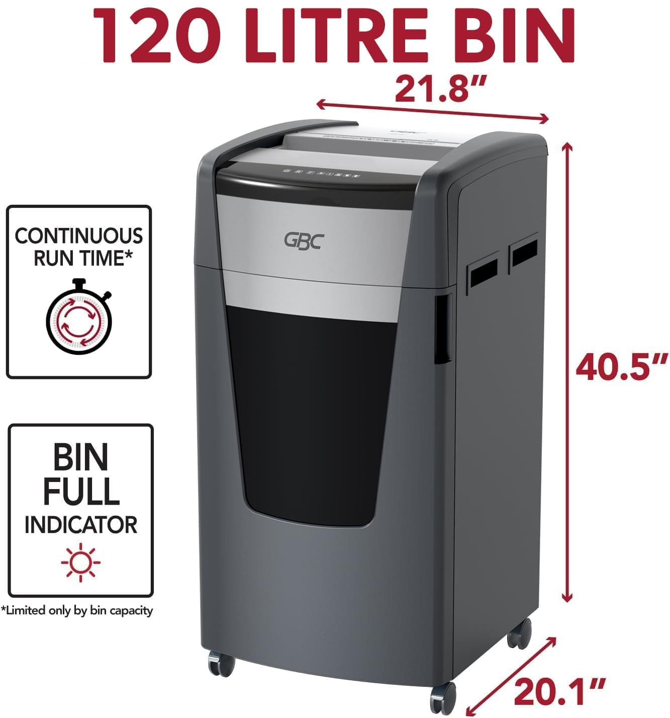 GBC ShredMaster XP520+ Jam Free Heavy Duty Professional Paper/Credit Card Micro Cut Shredder, 20 Sheet Capacity and 120L Bin, 2 x 15mm Micro Cut, Touch Panel, Continuous Shredding