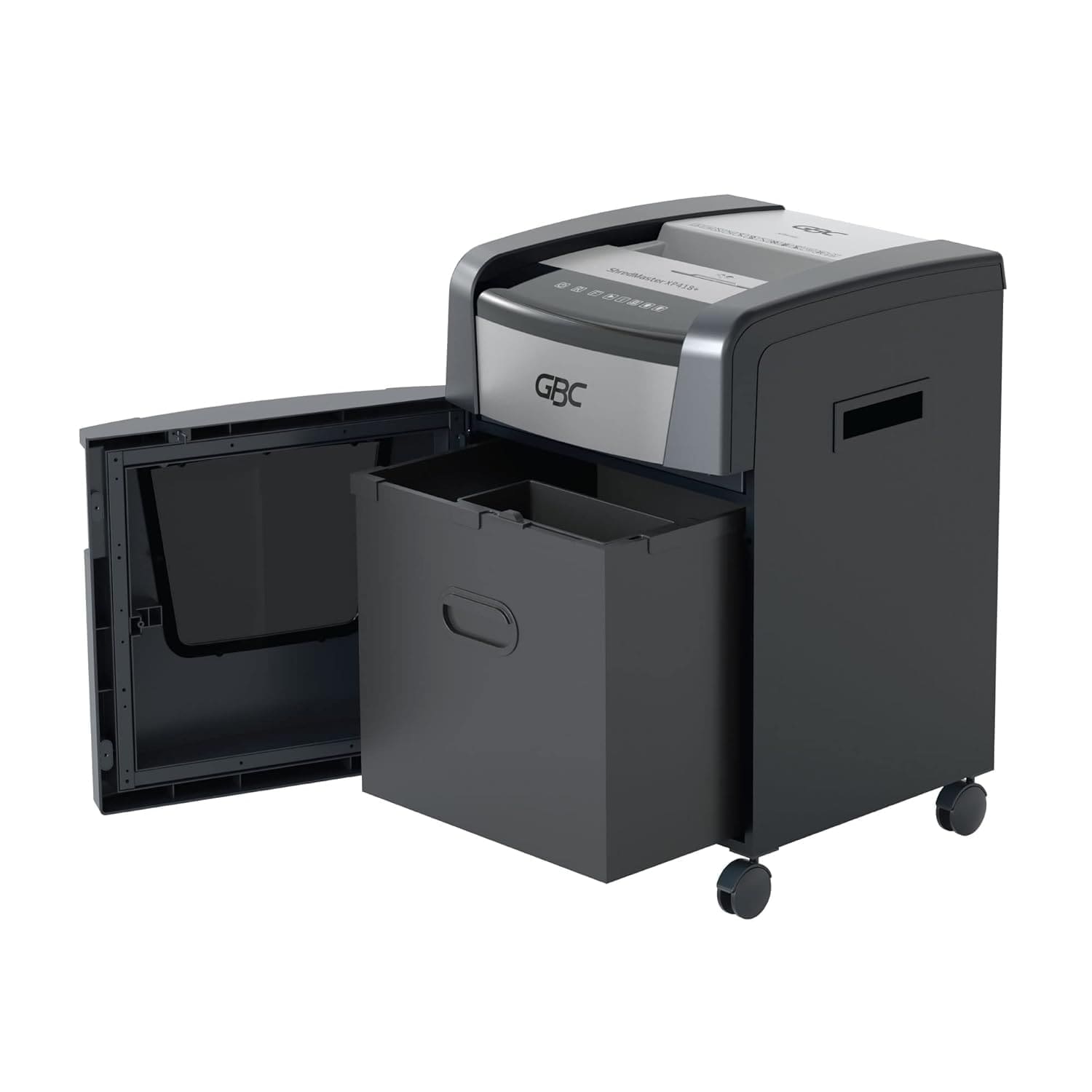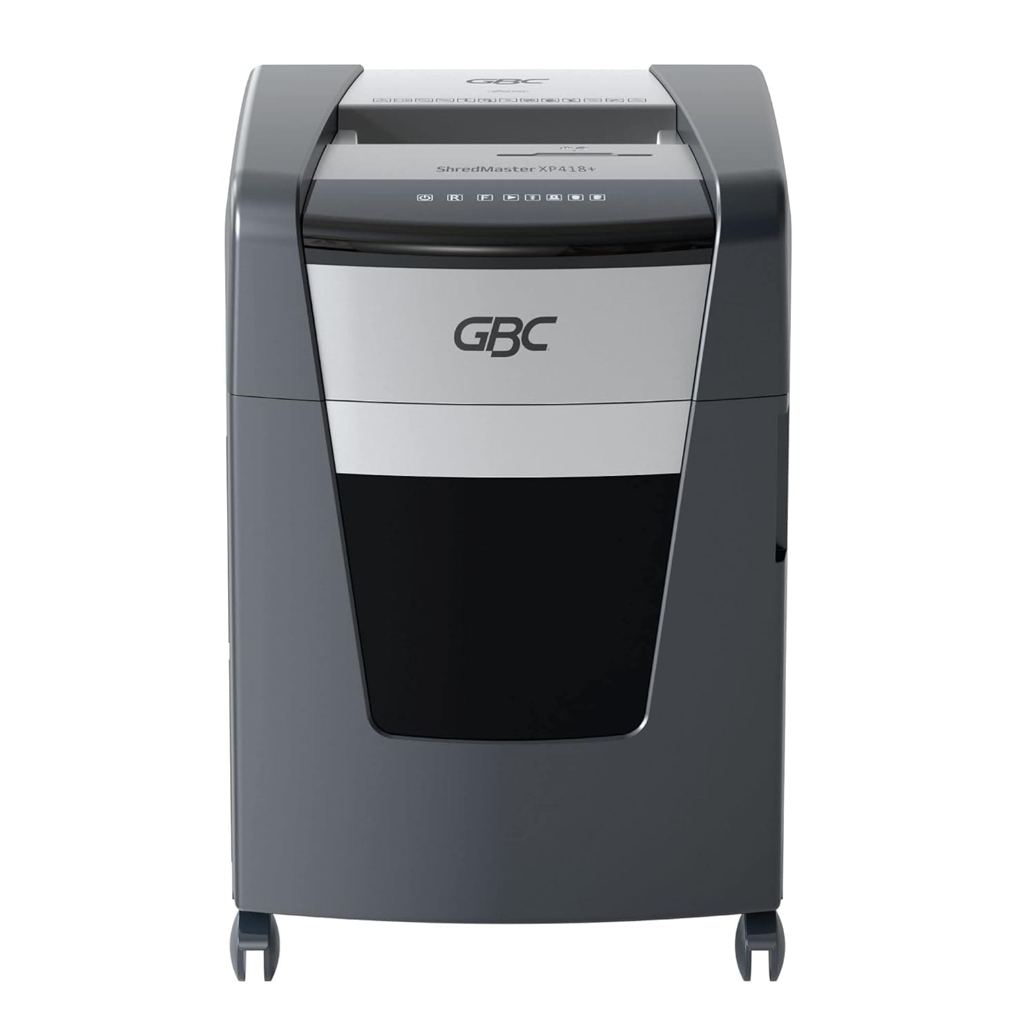 The GBC ShredMaster XP418+ is a high-capacity cross-cut shredder designed for demanding office environments. It shreds up to 18 sheets per pass into small particles, ensuring secure document disposal. With its robust build, quiet operation, and ability to handle paper, staples, and credit cards, it offers efficiency and reliability for everyday use.