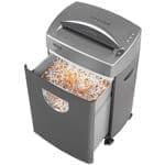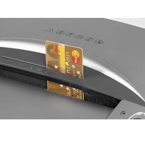 Shreds paper, credit cards and CDs. Dustproof collecting bin with large inspection window. Bin can be easily removed for emptying. Easy mobility thanks to 4 castors – two of them lockable.
