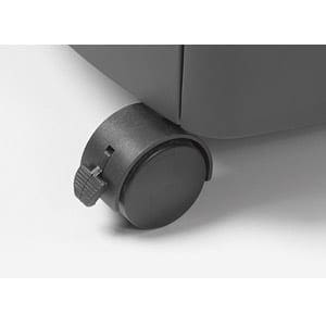 Shreds paper, credit cards and CDs. Dustproof collecting bin with inspection window. Easy emptying thanks to removable bin. Easy mobility thanks to 4 castors – 2 lockable. Shreds paper clips, CD/DVD and plastic cards.