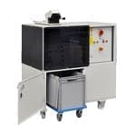 The nicely shaped machine securely destroys nearly all commonly used optical and magnetic data media like HDD´s up to 3.5” and also video cassettes, carbontapes, electronic circuit boards, CD-ROMs, DDS and DLT tapes to only 18.5 mm wide pieces. Fully automated control of all functions via a brand name PLC makes operation very simple and saves human resources. For most flexible use the VZ Multimedia is movable on castors, matches through standard doors and requires only 0.8 sqm space and can be operated at any single-phase outlet.