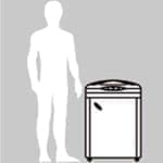 Carbon hardened cutting knives, unaffected by staples and metal clips. High precision design of cutting knives allows high shred loads with low power consumption. Motor thermal protection. 24 hours continuous duty motor: no duty cycle or timed cool down period. Equipped with “ENERGY SMART” system with optical illuminated indicators for power saving stand-by mode and environmental protection. 130 liters high quality steel cabinet holds high volume of shredded materials.